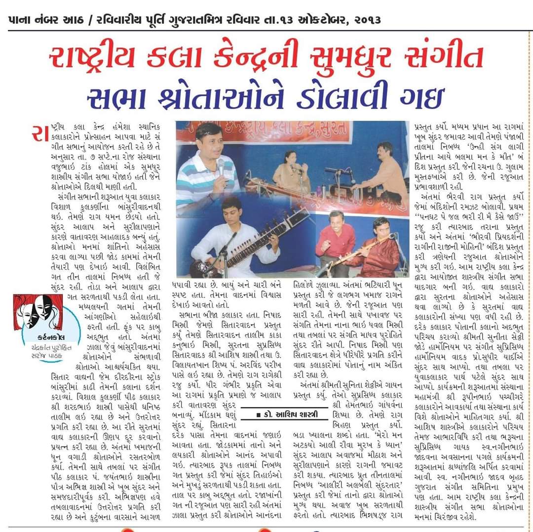 Structured vocal training including swaras, ragas, rhythm, voice culture, ear training, and stage performance skills. Learn More →